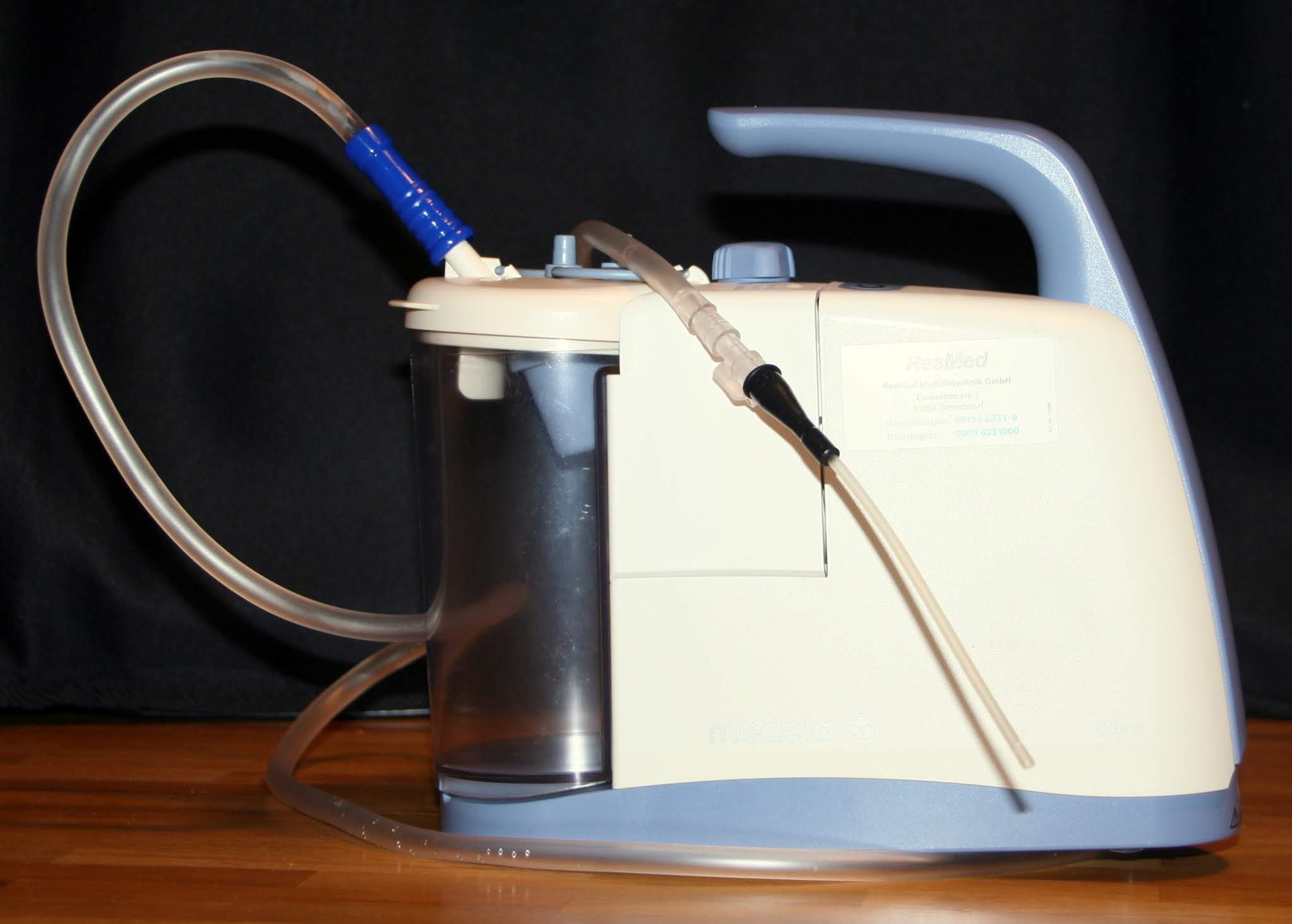 Das ist ein Clario, der auch mit in den Kindergarten geschickt wurde und jetzt Begleiter in der Schulzeit ist. Wir haben den aber schon immer sehr ungern benutzt, weil wir damit nur schwer nasal absaugen können. Es gibt zwar am Ende des Rezeptalschlauchs (so heißt der Schlauch, den man an den Auffangbehälter anschließt) einen Fingertip, der eigentlich weich ist, aber unser Kind ist schon sehr empfindlich. Sobald sie sich beim Absaugen wehrt, ist die Gefahr groß, dass wir ihr zartes Näschen verletzen und Nasenbluten provozieren. Die Alternative ist, das Gerät wie eigentlich vorgesehen zu benutzen, nämlich mit Absaugkathetern.