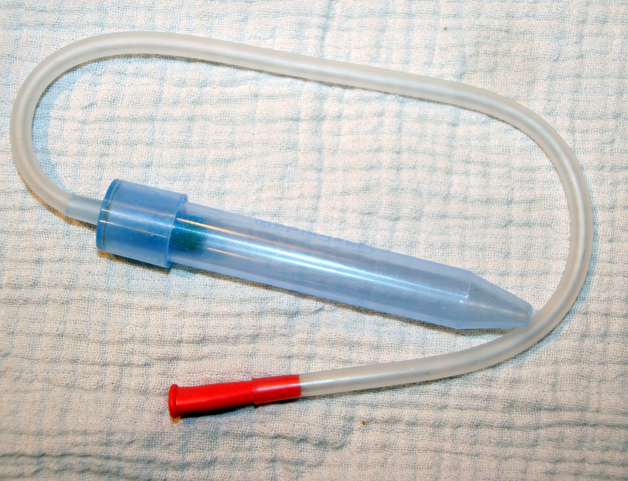 Uns sind eigentlich relativ kurze Katheter am liebsten, aber manche Varianten gibt es bei unserem Versorger nur in bestimmten Längen. Ein wenig schwierig zu handhaben sind alle bei unserer Motte. Leider sind ihre Schleimhäute so empfindlich, dass sie sofort Nasenbluten bekommt, wenn man mit so einem Ding nasal absaugen möchte. Auch orales Absaugen ist nicht der Hit, weil man auch hier sehr schnell Verletzungen im Rachen zufügen kann und sie hasst es schlichtweg. Es ist eine Qual. Wenn sie richtig krank ist und wir einfach mal tiefer in den Rachen müssen, nutzen wir das natürlich, aber eigentlich ist nasales Absaugen mit dem AngelVac unser erstes Mittel der Wahl. Bleibt immer noch das Problem mit dem Staubsauger, wenn man unterwegs ist.