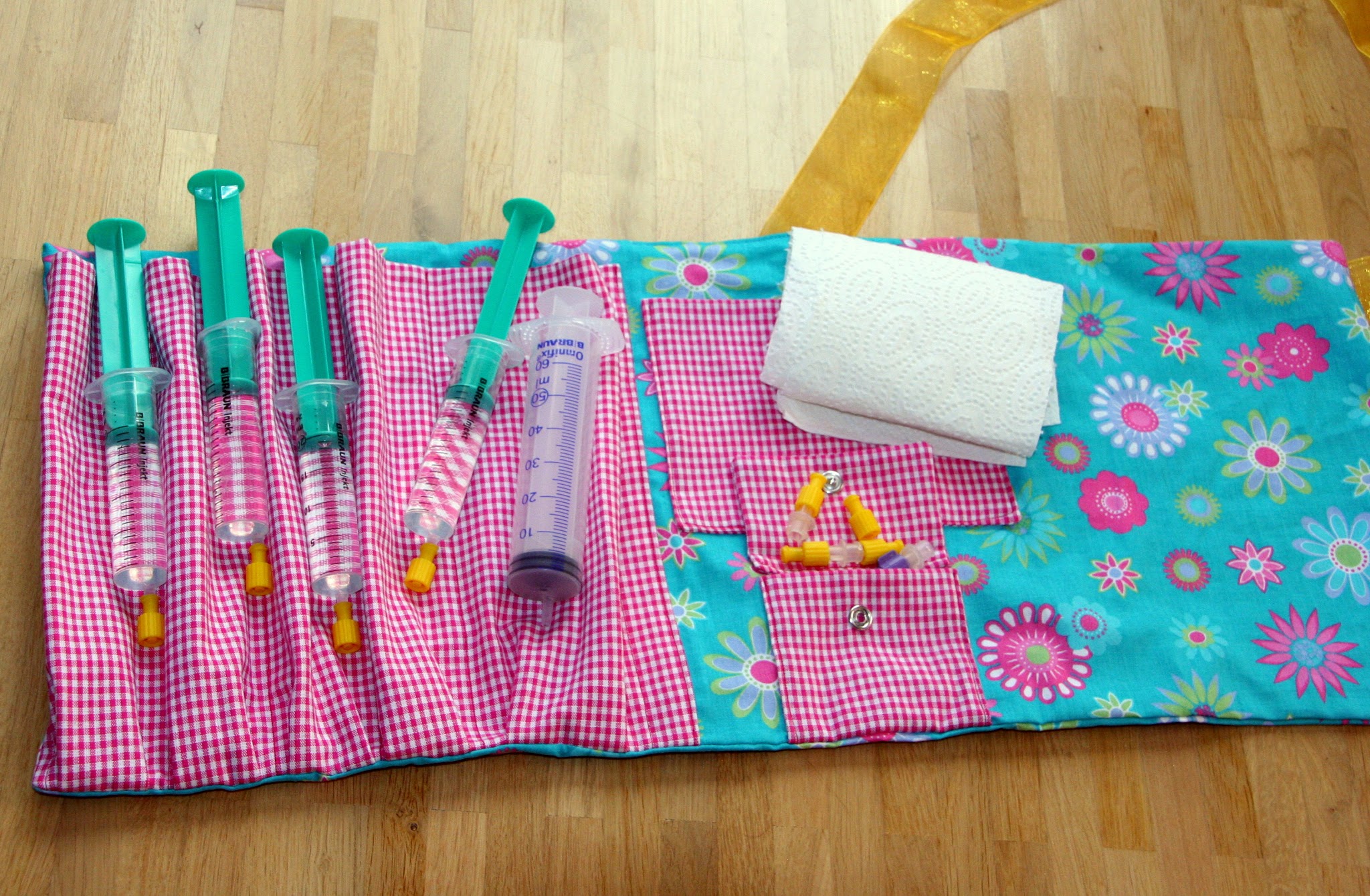 Das ging schon, aber die Reißverschlüsse aufzufummeln war immer doof und dann sind die Spritzen durcheinander gefallen und es war irgendwie nicht kompakt und ließ sich auch nicht mit einer Hand bedienen. Diese Anforderungen erfüllt jetzt MY Sprolli.