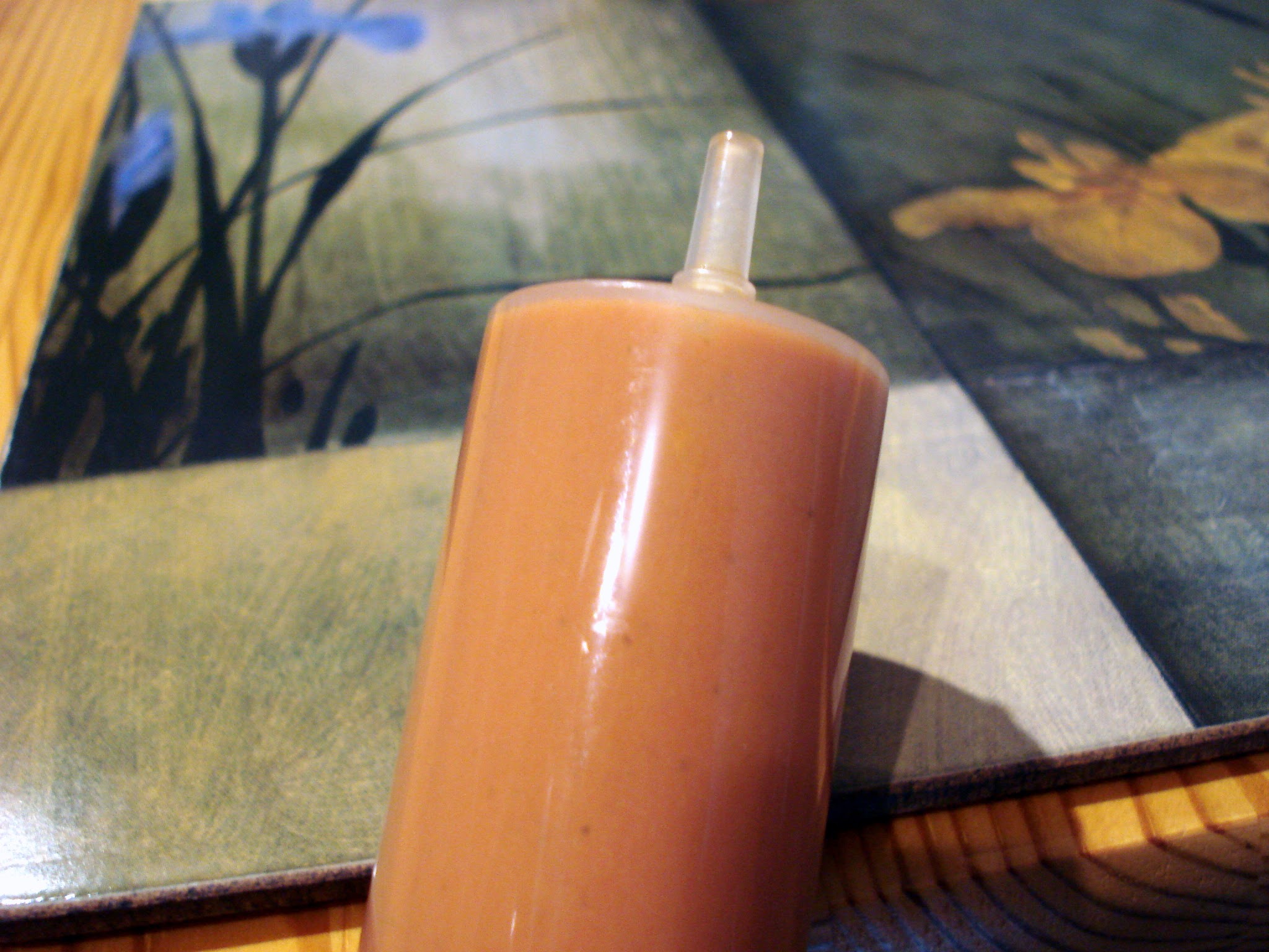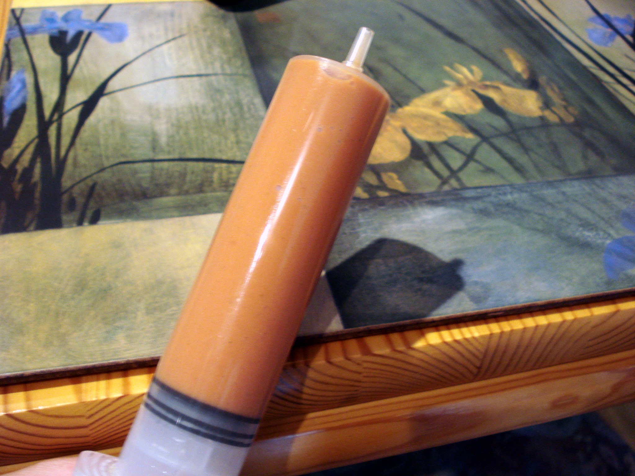 Also suche man sich eine geeignete Tischkante, nachdem die Nahrung in die Spritze geschlürft ist und beginne das berühmte Tock, Tock, Tock.