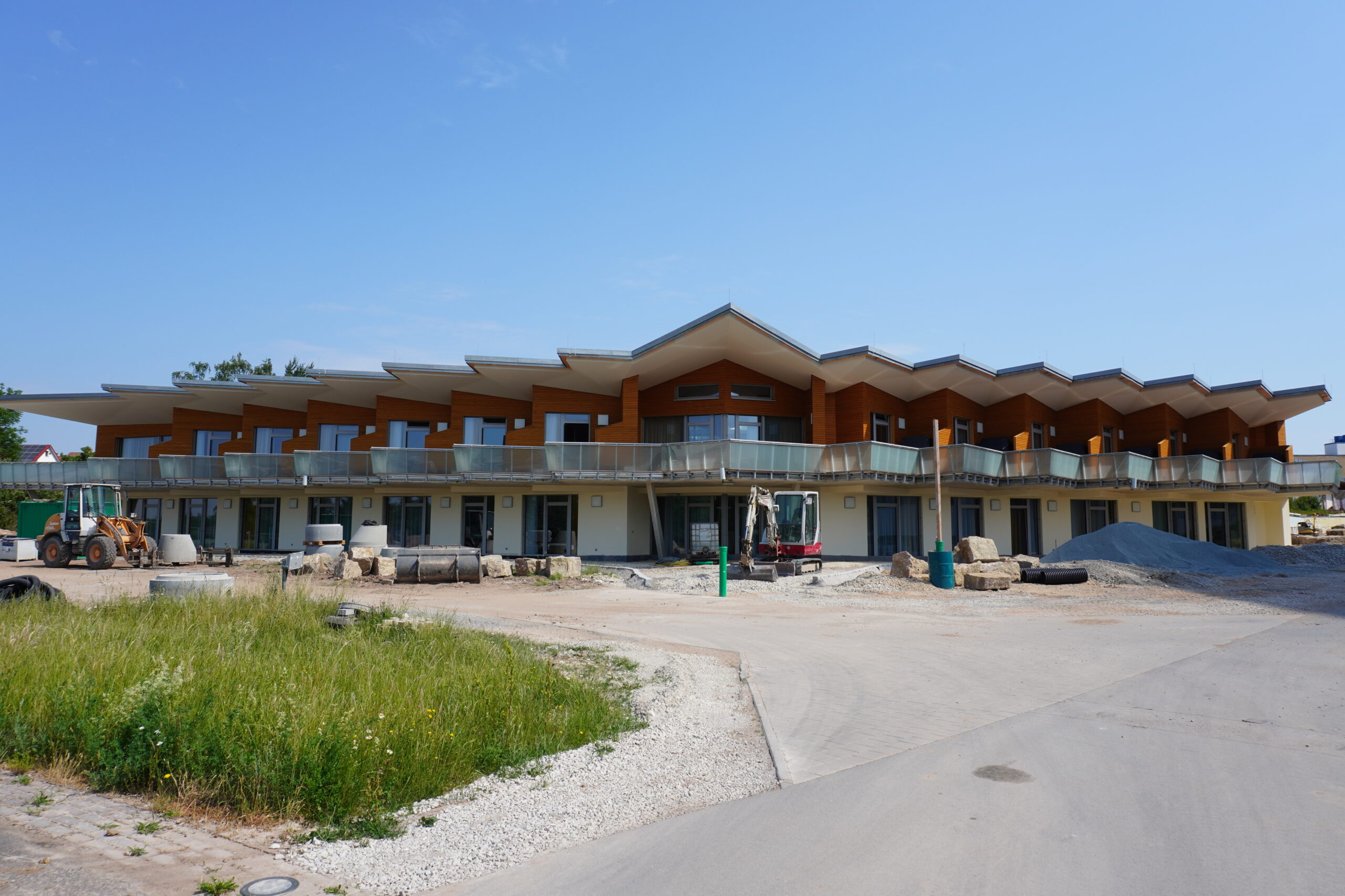 Zu den Anfangsstolpersteinen gehören sicher bauliche Herausforderungen, die entweder noch komplett gemeistert und einige Dinge behoben werden müssen oder die wegen Lieferschwierigkeiten einfach dauern. Die Außenanlagen befinden sich gerade im Entstehen und in eben diesem Außenbereich wird sicher noch länger gebaut und umgebaut werden. Wenn irgendwann alles fertig sein wird, wird es sicher ein wundervolles Gesamtkonzept. Mit Erlaubnis der Leitung habe ich ein paar Bilder gemacht, um Euch einen Eindruck vom neuen Sternenzelt zu geben, also folgt mir auf meinem Rundgang durchs neue Hospiz.
