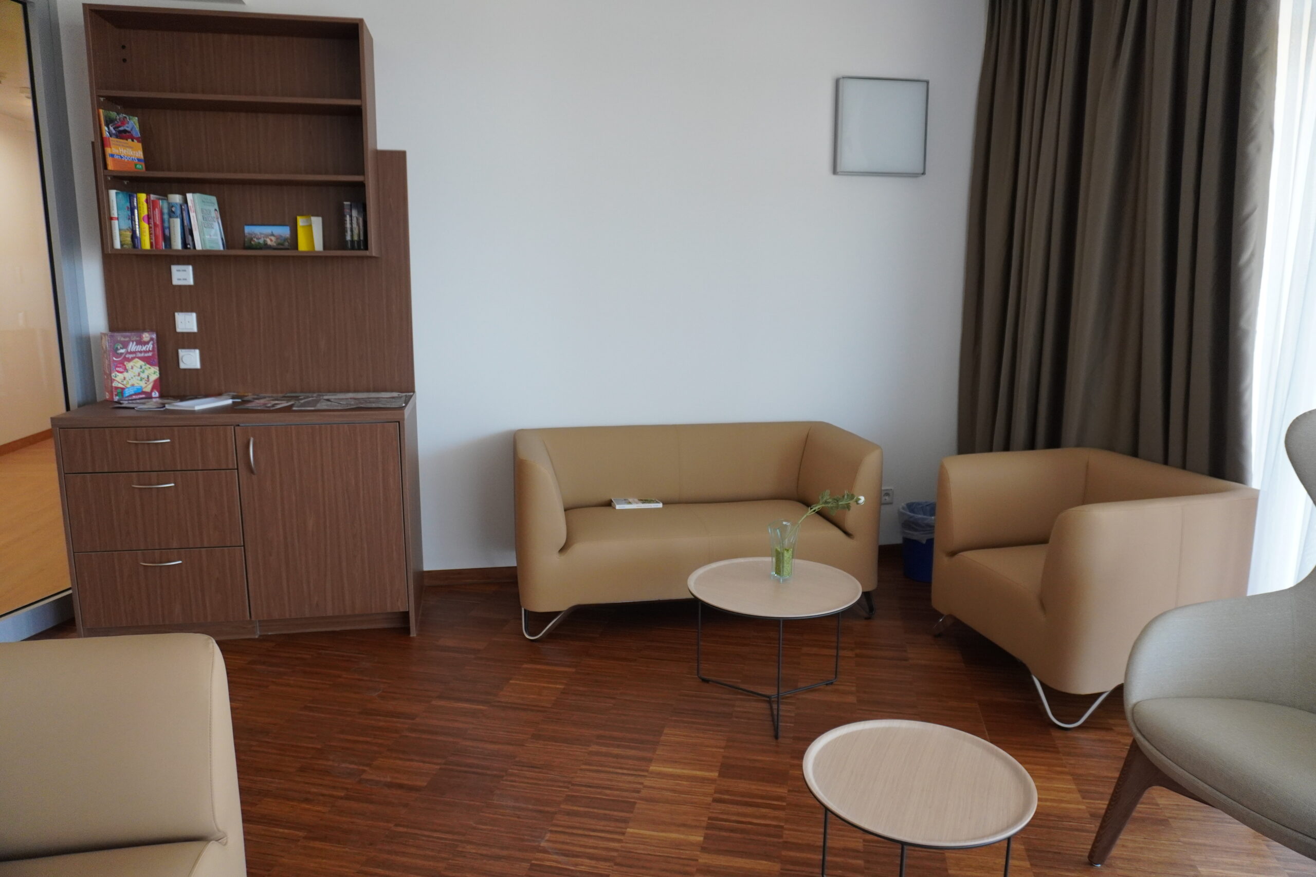 Fasziniert hat uns die Tatsache, dass es trotz des nahen, großen Klinikums sehr ruhig war. Man konnte die Aussicht auf die Umgebung genießen, hört Vögel zwitschern und ist völlig verblüfft, dass man nichts vom regen Klinikbetrieb mitbekommt. Außer der Hubschrauber landet mal, aber das kam in der Zeit, in der wir dort zu Gast sein durften, nicht allzu häufig vor.
